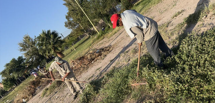 La dirección de medio ambiente, guiada por Raúl Díaz, junto al apoyo de producción, siguen recorriendo los sectores barriales de Aimogasta, buscando reordenar los espacios verdes, y llama a la comunidad a cooperar con el cuidado de los mismos.